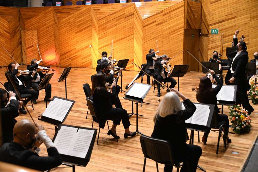 Con las medidas correspondientes para cuidar la salud de todas las personas que asisten a los conciertos de la Sala Felipe Villanueva y el Museo de Arte Moderno, la OSEM interpretó las obras con la pasión y la energía que la caracteriza.