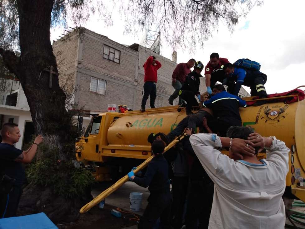 Elementos de Rescate Urbano y Atención Prehospitalaria de Ecatepec salvaron a dos hombres que quedaron inconscientes en el interior de una cisterna de una pipa, esto cuando intentaban pintarla sin contar con las medidas de seguridad adecuadas.