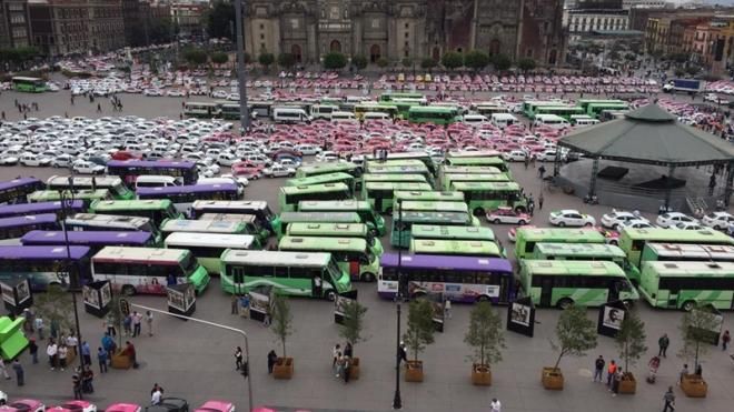 Varios taxis y hasta autobuses del transporte concesionado que habían puesto a todos sus vehículos en el Zócalo de la Ciudad de México, ahora empiezan la retirada de éstos.